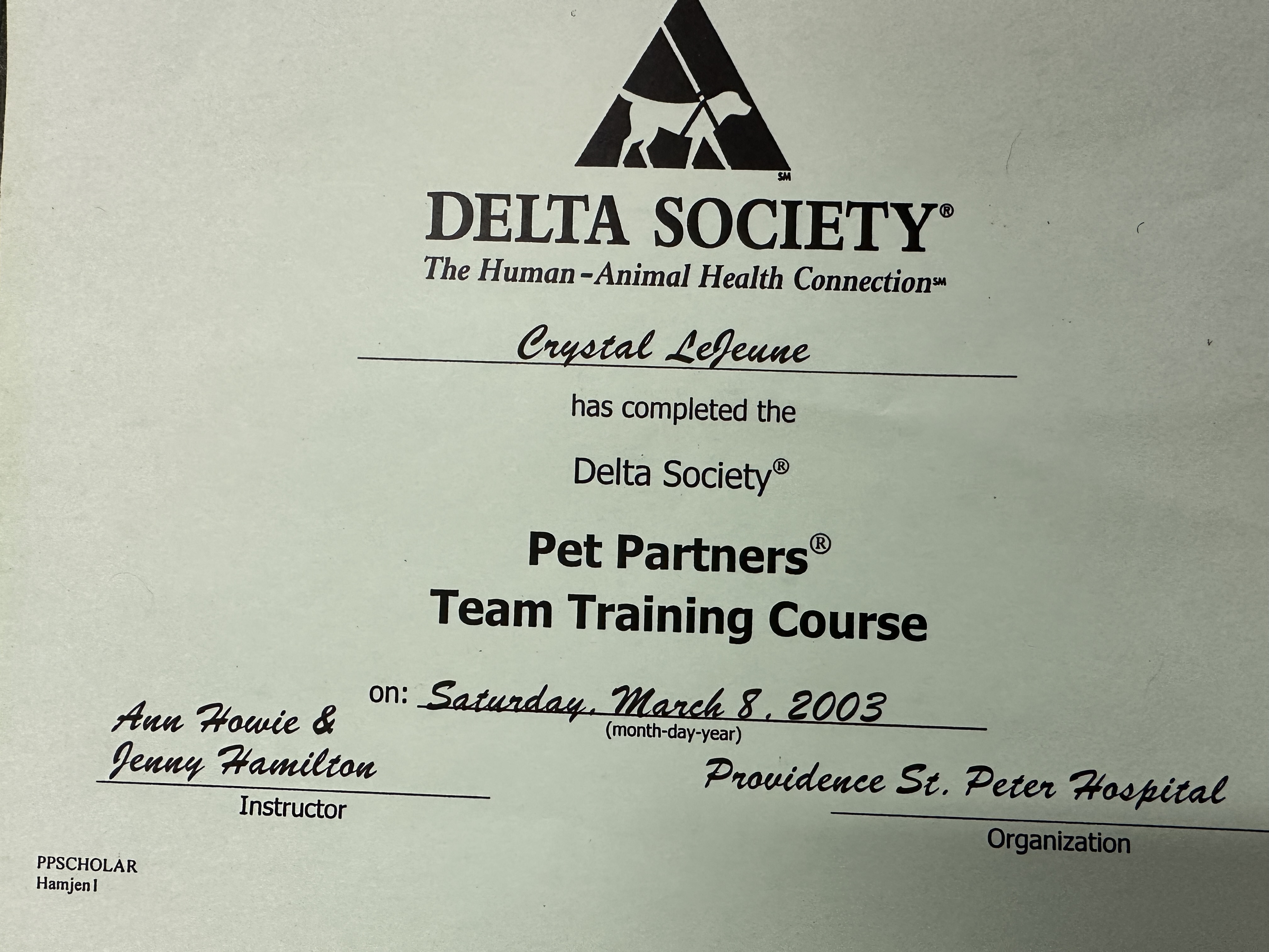 Delta Society pet partners team training.