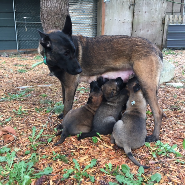 Here I am at the (top left) Nisqually Kennel Club with American Kennel Club Judge, best in Show Belgian Malinois and owner. Excelon foundation Belgian Malinois with puppies (bottom right).